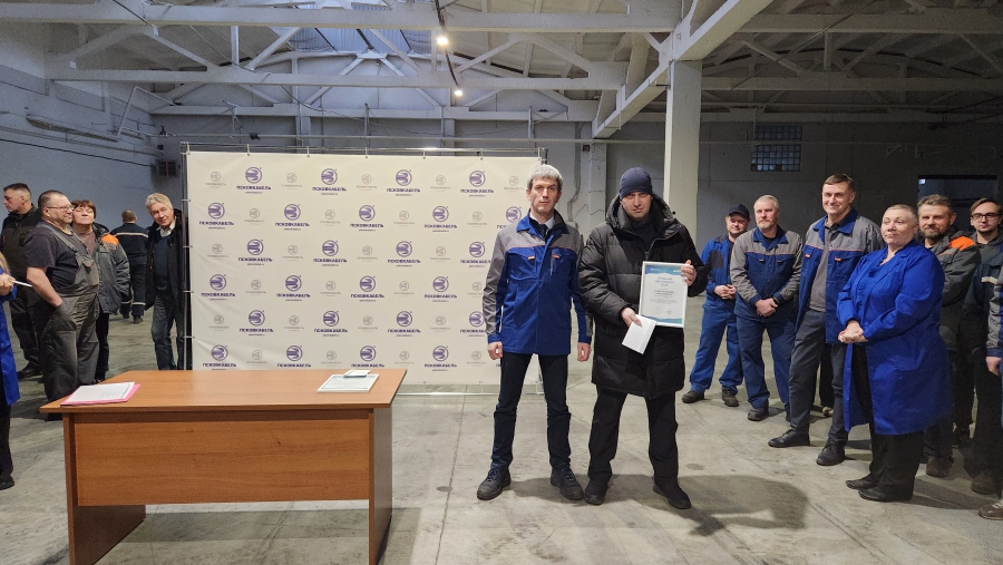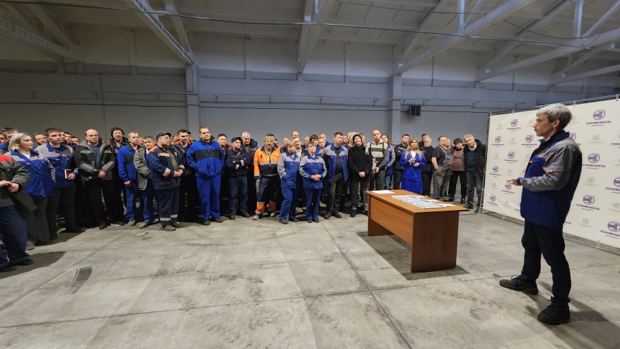 25 декабря в новом цехе обмоточных станков состоялось торжественное собрание коллектива ООО "ПсковКабель", посвященное наступающему Новому году. Директор предприятия поздравил сотрудников с праздником, поблагодарил за плодотворную работу в 2025 году и представил презентацию, в которой были отражены как успехи предприятия, так и трудности, с которыми пришлось столкнуться.