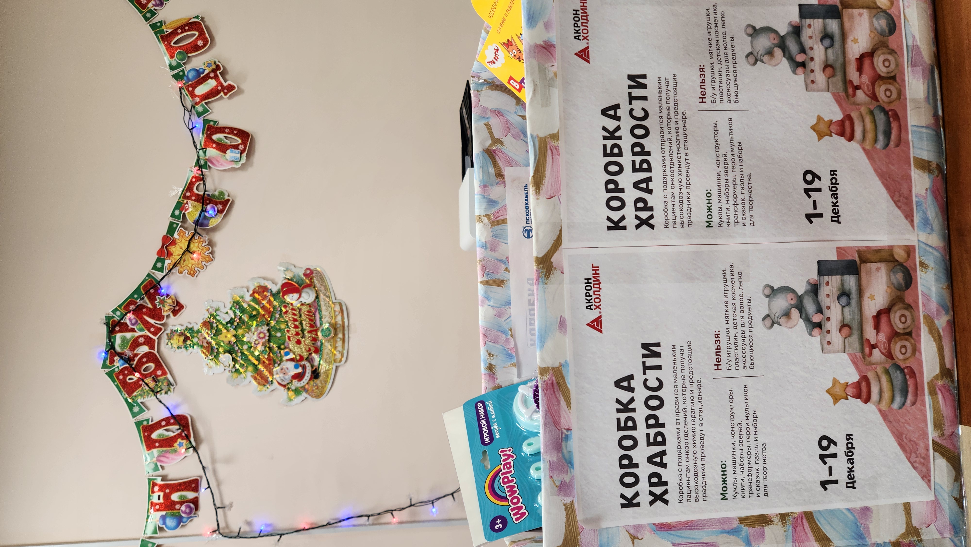 «Коробка Храбрости» стала доброй традицией, и дети, которые уже не первый год противостоят болезни, с нетерпением ждут наших визитов в подшефных больницах. Улыбки на лицах детей, их искренние эмоции и непоколебимая вера в чудо – вот главный стимул, движущий акцией «Коробка Храбрости». Цель акции – создать атмосферу волшебства и сказки для маленьких пациентов, проходящих интенсивную химиотерапию и вынужденных встречать новогодние праздники в стенах больницы.Сотрудники завода ПсковКабель доставили собранные подарки в Детскую областную больницу г. Пскова. Яркие игрушки, увлекательные книги и развивающие наборы были переданы маленьким пациентам, чтобы отвлечь их от больничных будней и создать праздничное настроение. Врачи и медицинский персонал больницы выразили искреннюю благодарность за внимание и заботу, проявленные к их подопечным.